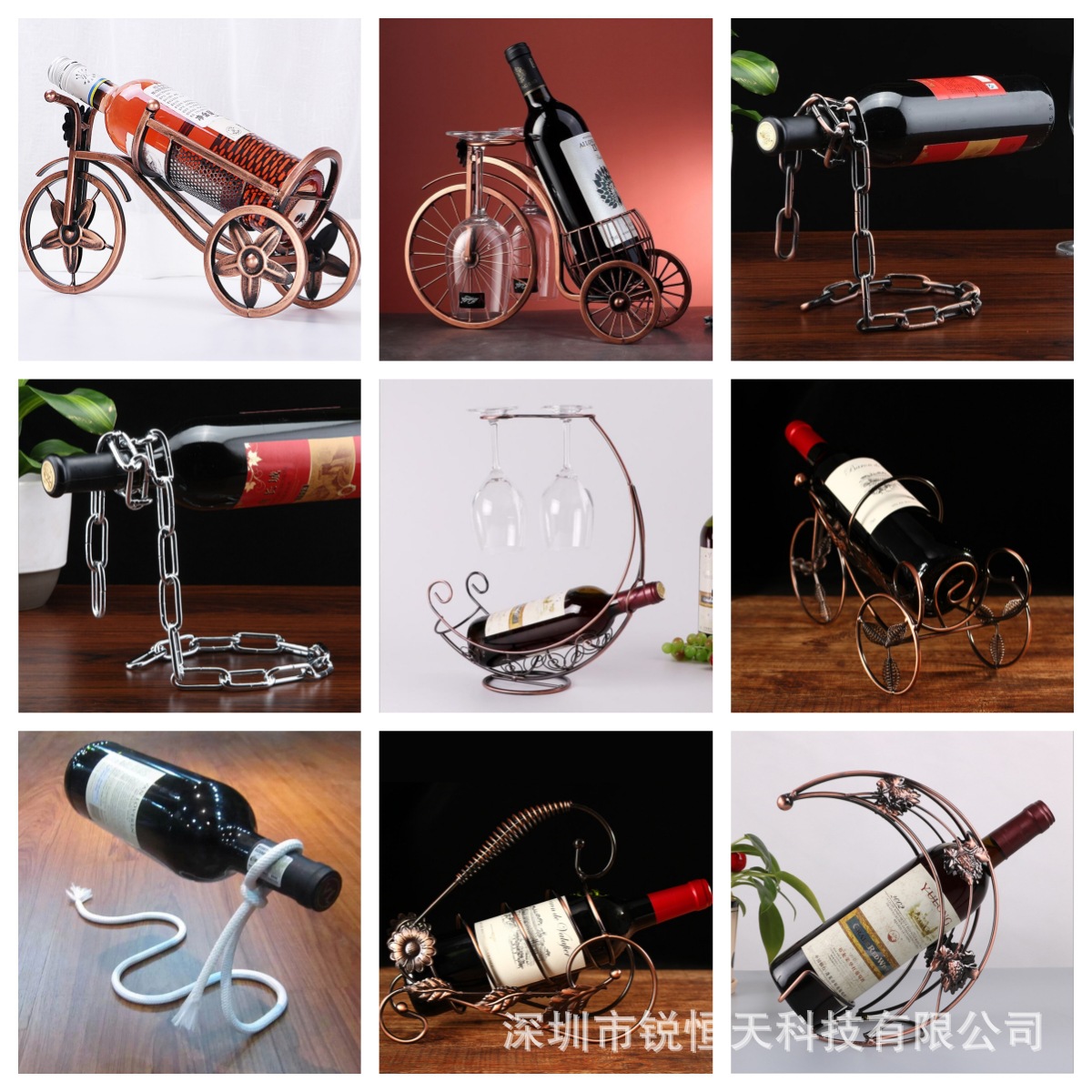 创意北欧铁艺红酒架摆件 欧式仿古餐厅酒吧KTV酒柜葡萄酒展示架子