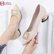 小红人浅口百搭单鞋女2025夏季新款粗跟尖头皮鞋软皮中跟鞋子