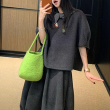 "超有品小姐姐"韩女欧尼泡芙花苞裙双层花边小衫针织衫
