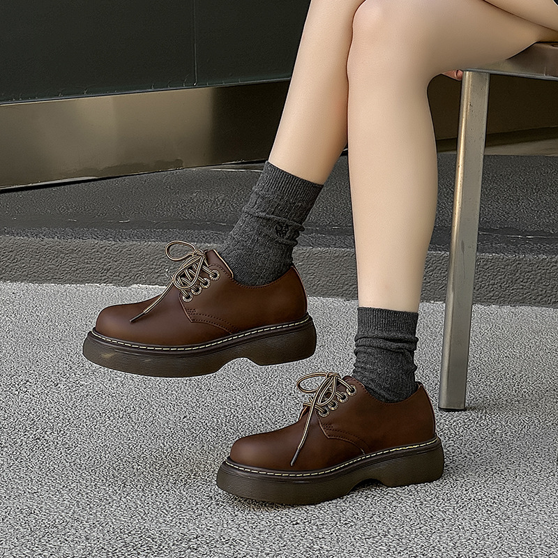 2024秋季新款男女情侣英伦风百搭复古松糕学院风系带单鞋22589-Q