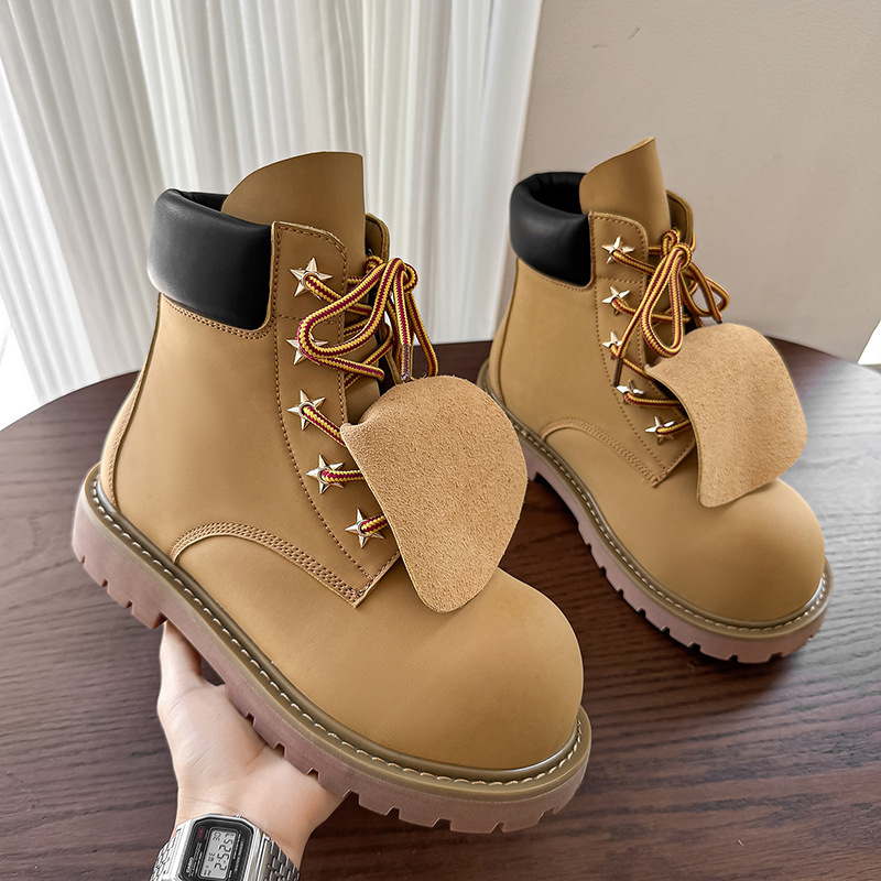 潮款高帮板鞋男女情侣厚底增高德比马丁靴英伦风贝壳学院风休闲鞋