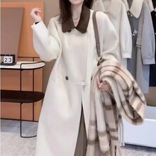 现货轻盈保暖双面尼大衣女立领单排扣腰带羊毛羊绒长款毛呢外套