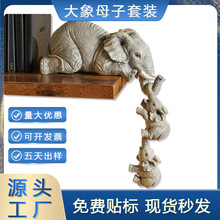 大象摆件树脂工艺品美式家居摆饰大象拉小象创意家款居摆件装饰品