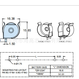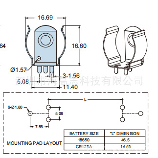 battery clips 电池夹18650 3pin 五金夹不锈钢1719代替 key 54