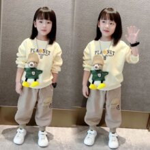 女童春秋套装新款立体小熊卫衣儿童洋气春季长袖韩版两件套潮
