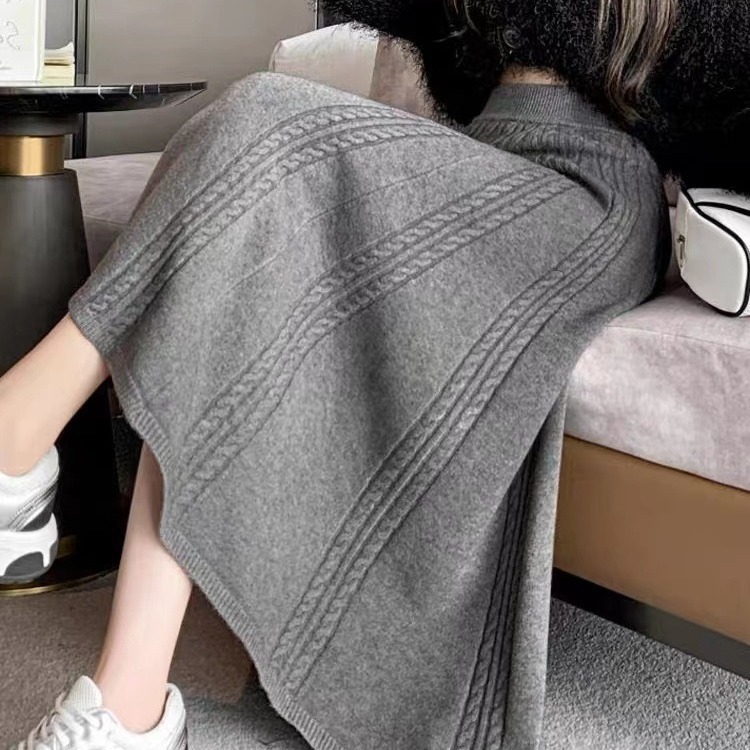 韩版通勤灰色半身裙2025春秋新款松紧弹力抽绳显瘦修身中长裙女