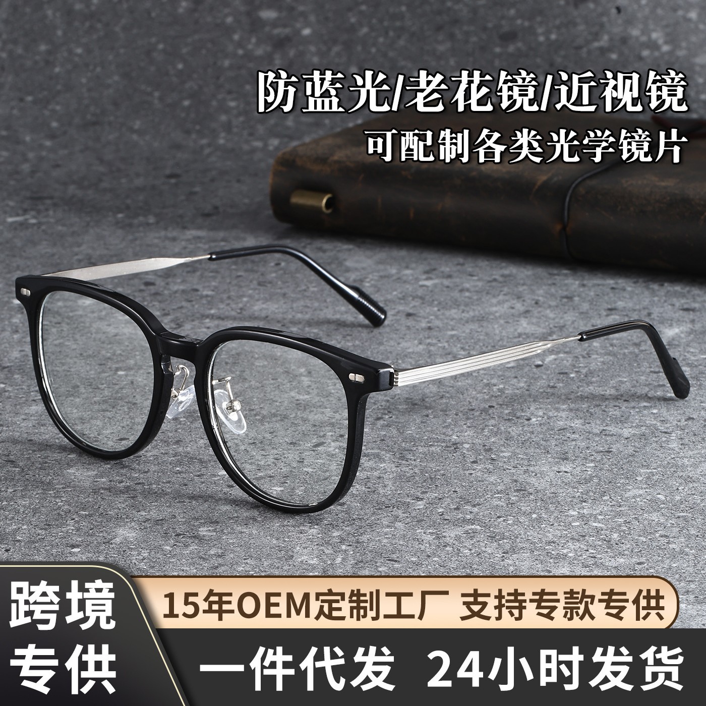 新款OY1002复古纯钛镜框男士高品质板材眉毛眼镜框男丹阳眼镜批发
