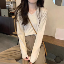 春秋冬季2025新款韩版长袖V领套头内搭打底针织衫女宽松毛衣上衣