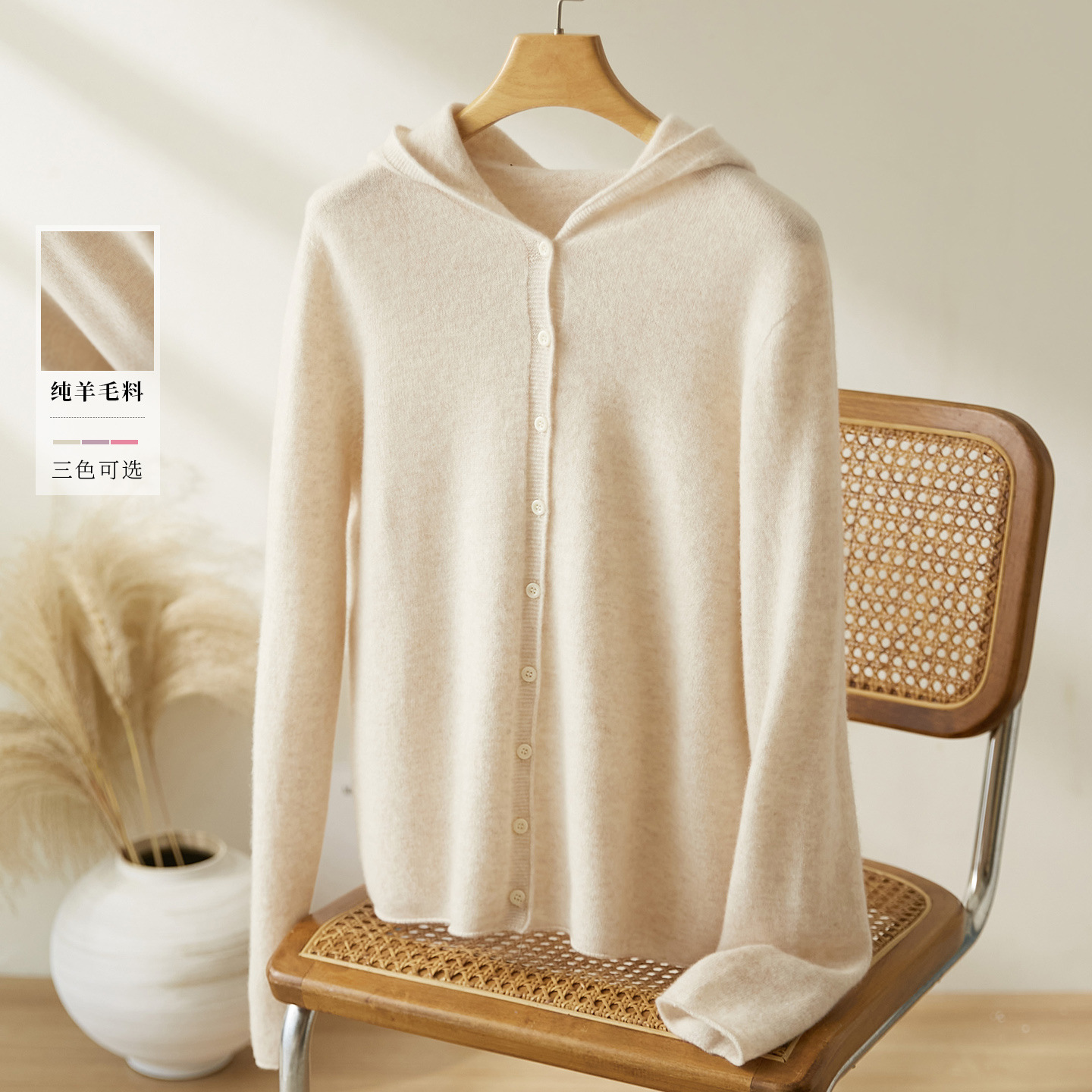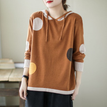 棉茧 燕麦色羊毛衫女长袖2025秋冬装新款连帽针织衫上衣打底毛衣