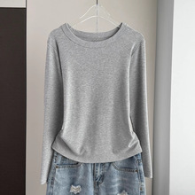 螺纹圆领长袖打底衫女早秋2025新款冬季薄款莫代尔内搭上衣t恤女