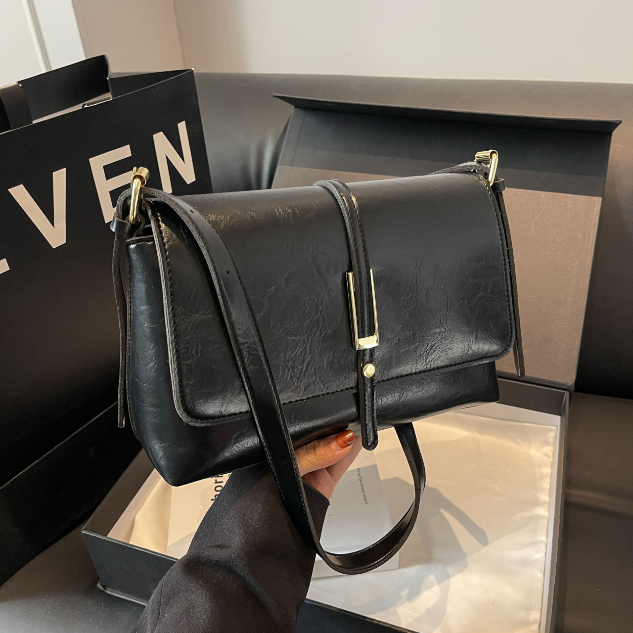 2025韩系慵懒风女包包秋季新款软皮大容量时尚皮带装饰通勤单肩包