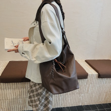 复古高级感软皮手工编织包简约单肩斜挎托特包通勤潮流手提水桶包
