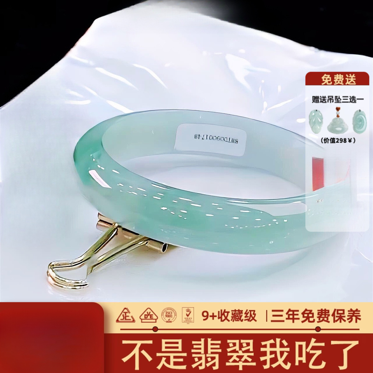 "晚冬晴"缅甸高冰种飘花翡翠玉手镯子女款翡翠处理高端礼物 包邮
