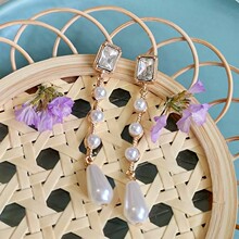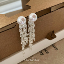 镶钻珍珠爱心流苏耳夹 文艺复古法式耳骨夹 时尚气质轻奢耳饰批发