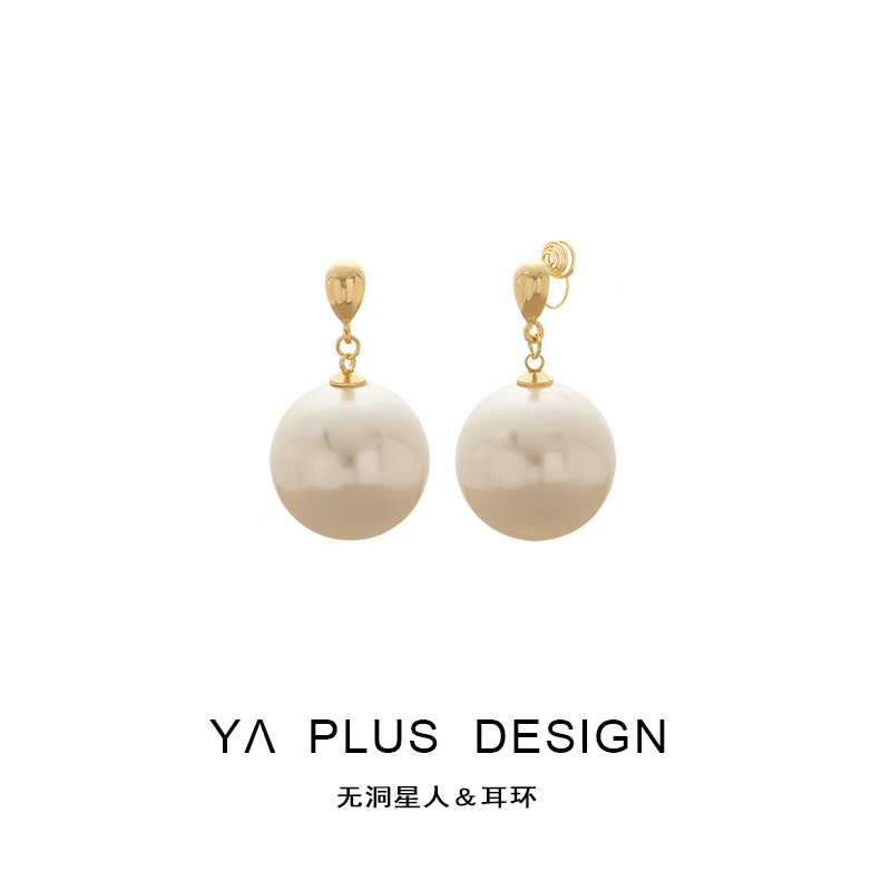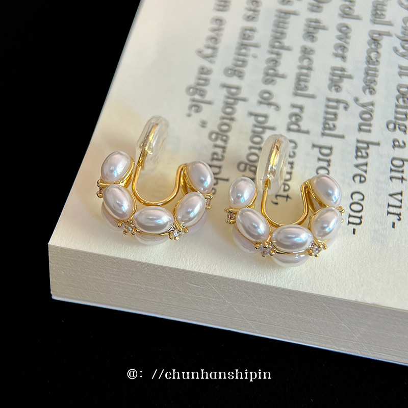 法式复古椭圆珍珠耳夹无耳洞 中古vintage饰品小众高级感耳饰批发