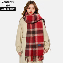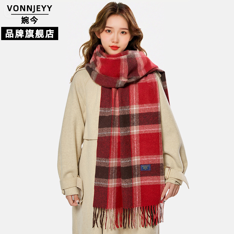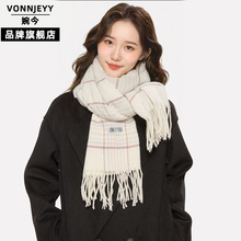 婉今正品围巾女冬高级感格子百搭时尚秋冬围脖加厚保暖流苏披肩女