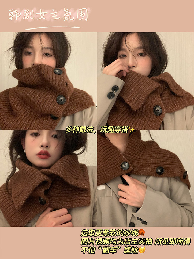 婉今正品针织保暖围巾女秋冬显白百搭围脖高级感柔软披肩一件代发