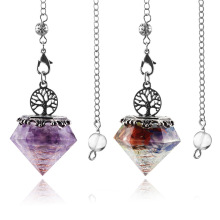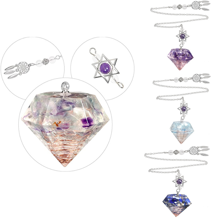 天然水晶碎石滴胶钻石形灵摆吊坠配捕梦网链子欧美外贸货源批发