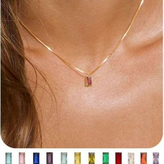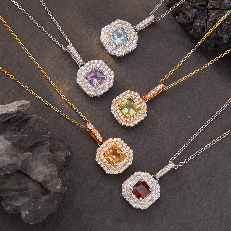 外贸跨境畅销彩色锆石项链 不锈钢方晶吊坠锁骨链优雅时尚项饰女