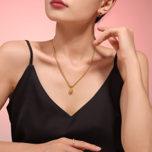 欧美复古几何圆形镶嵌钻石吊坠钛钢18k镀金chic风锁骨链项链批发