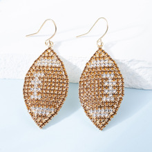 跨境欧美个性潮流运动风棕色橄榄球水钻耳环时尚吊坠女士对称耳饰