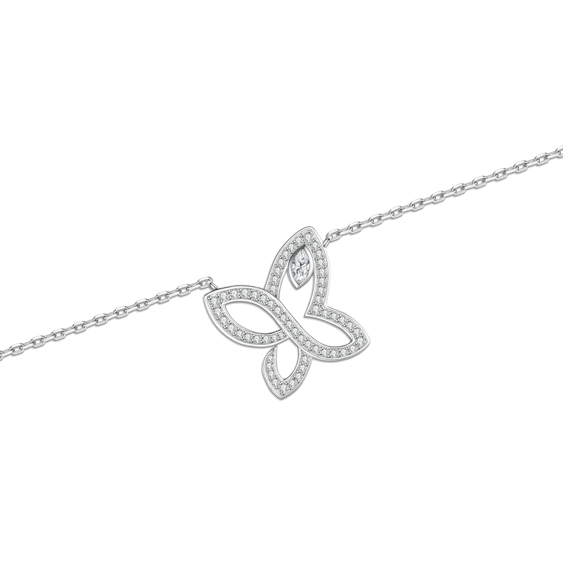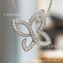 925纯银Lily三叶草项链女满钻橄榄马眼石吊坠蝴蝶钻石个性锁骨链