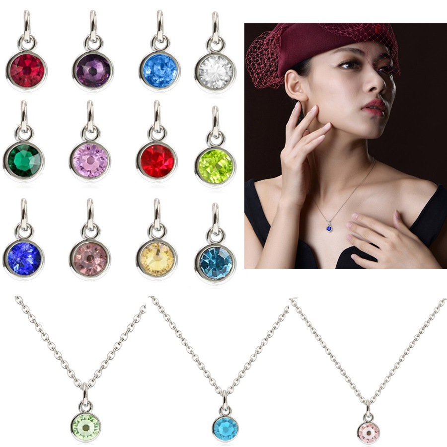 外贸跨境畅销彩色锆石项链不锈钢吊坠锁骨链优雅时尚项饰品女批发